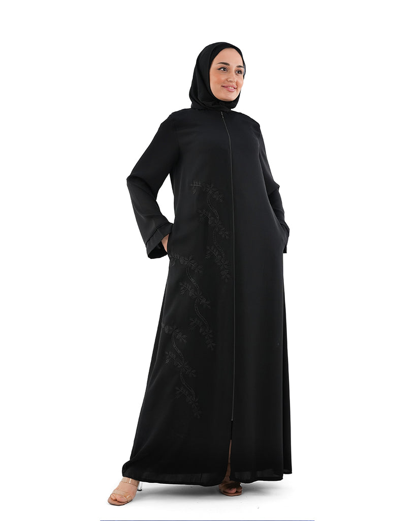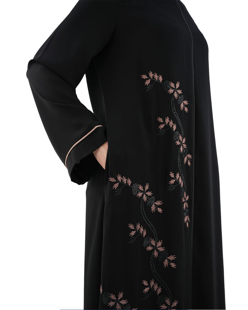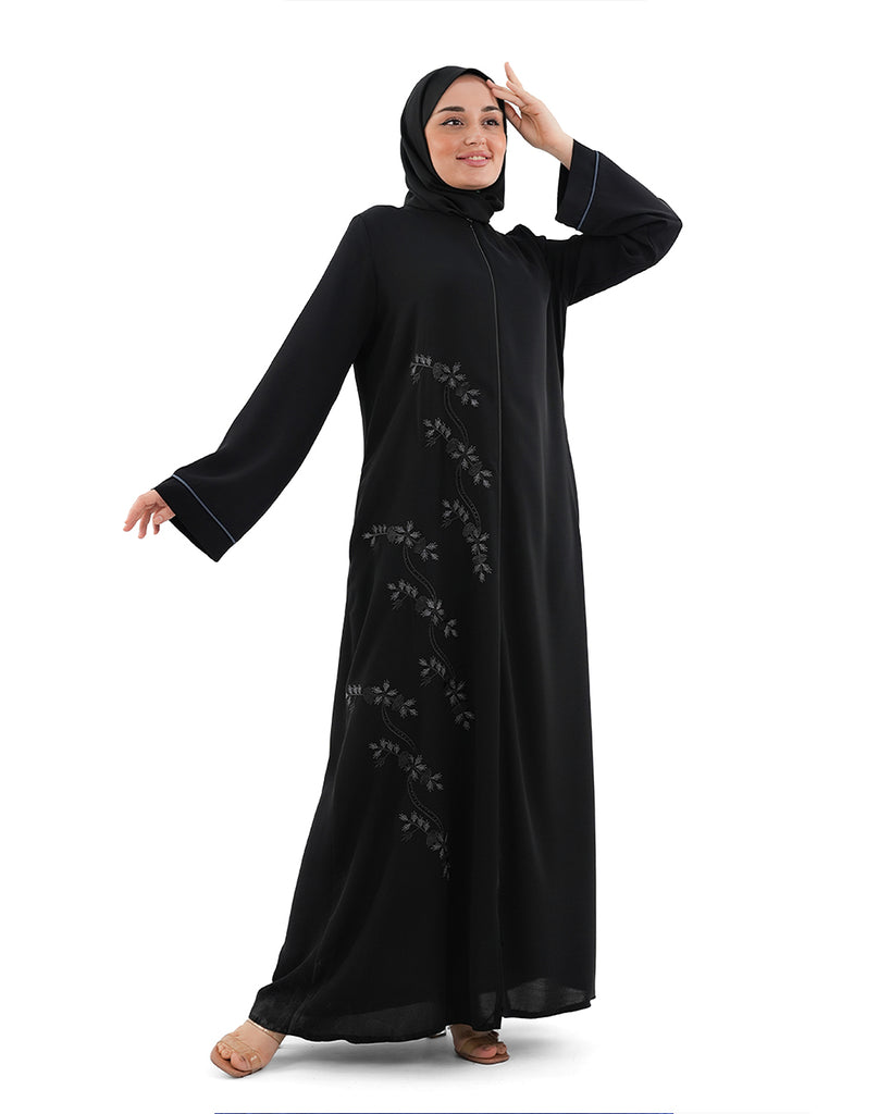 An elegant abaya with exquisite floral embroidery that adds a touch of beauty and femininity. Designed with a perfect balance of simplicity and sophistication, it offers a refined look suitable for both special occasions and stylish everyday wear.