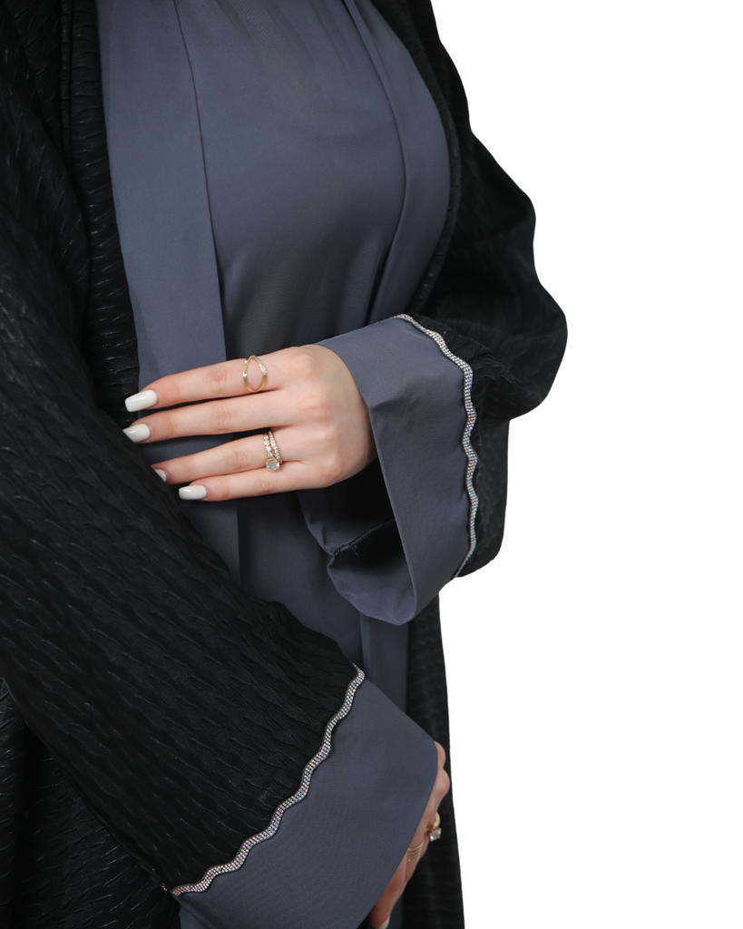 Elevate your style with this elegant two-piece abaya. The inner piece features a chic sleeveless cut that adds a feminine and modern touch, while the outer flowy layer enhances modesty with effortless sophistication. Designed for both everyday wear and special occasions, this abaya combines comfort, elegance, and timeless appeal.
