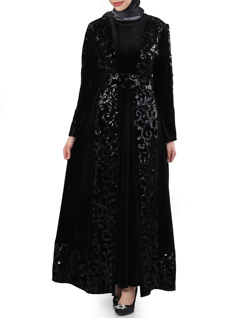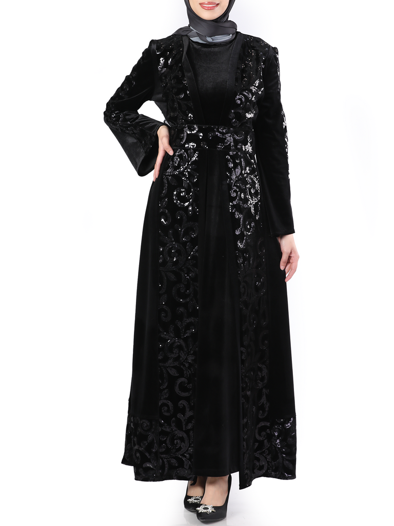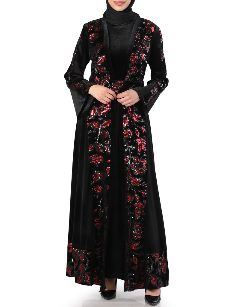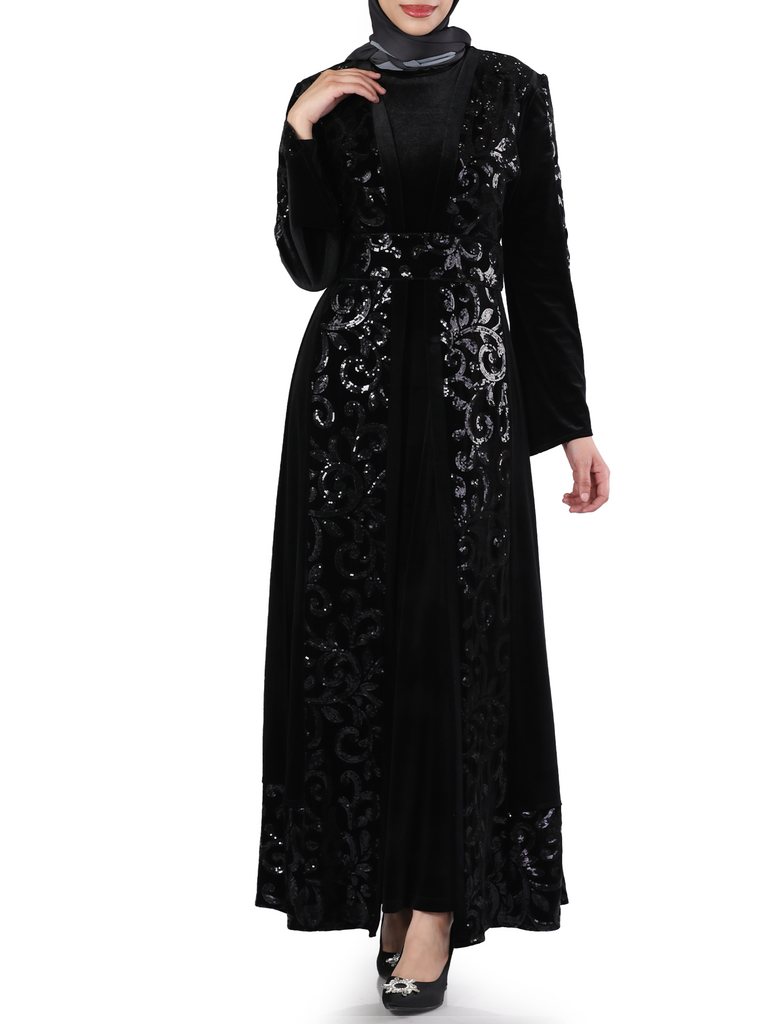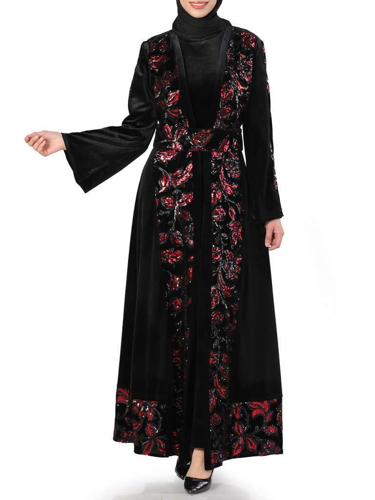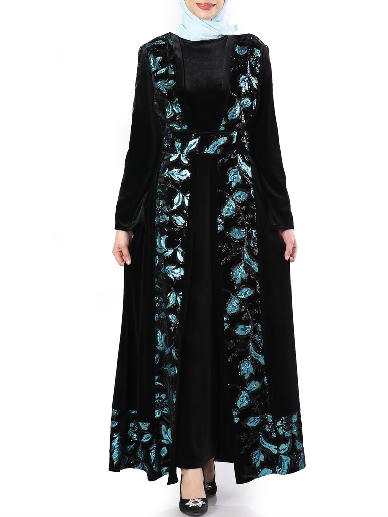 This besht is a wonderful piece of art that displays intricate designs and inscriptions. Besht is available in several colors, including black and sky blue, black and red, black and gold, and plain black. The besht consists of two pieces: the upper one and the lower one. The top piece is made of luxurious velvet, decorated with bright and shiny embroidery. The bottom piece is made of soft and comfortable fabric, matching the color of the embroidery. The Bisht is full-length, and gives the wearer an elegant and sparkling look.