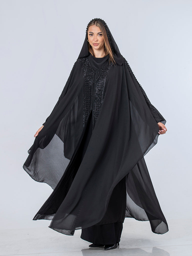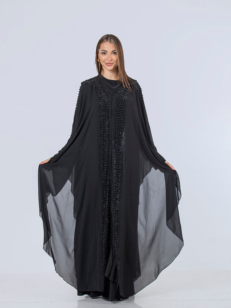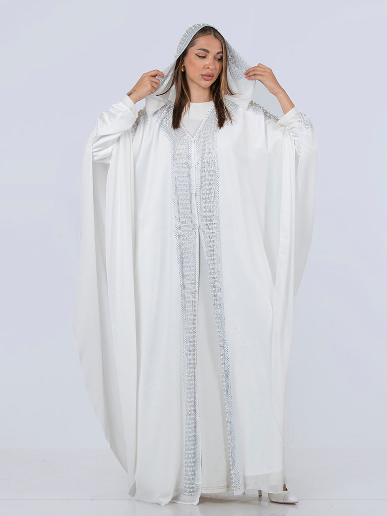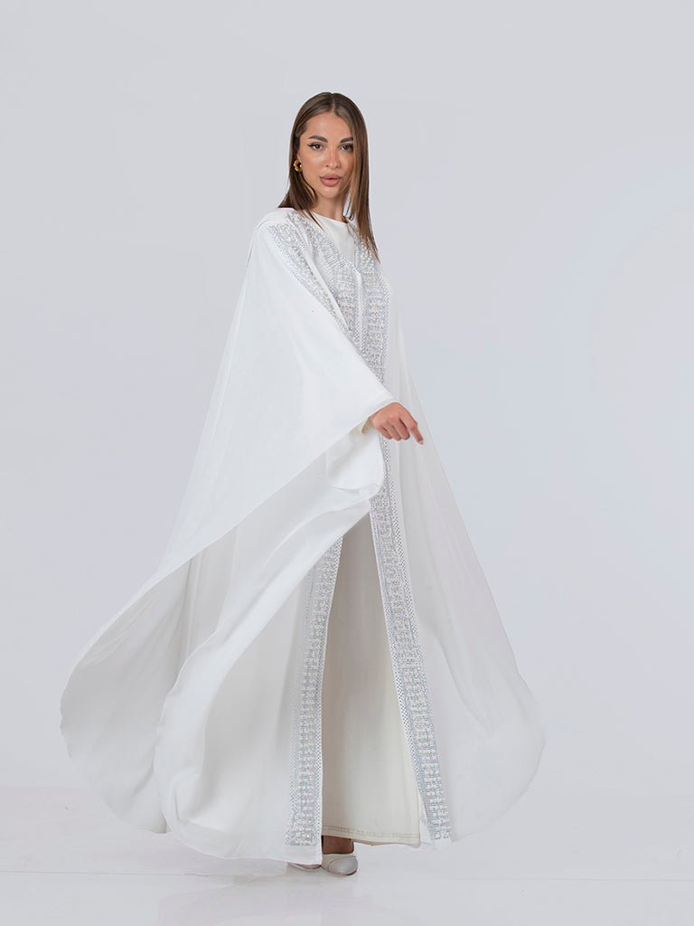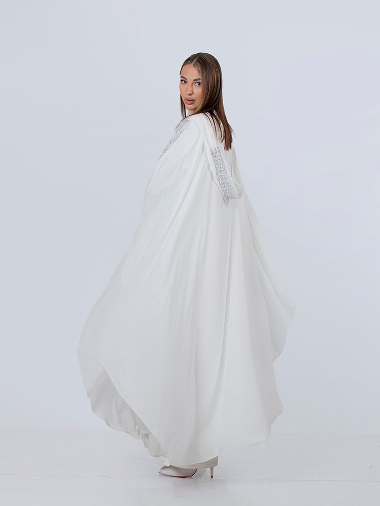 Elegant free-size bisht made from soft, lightweight chiffon that offers a sense of purity and elegance.