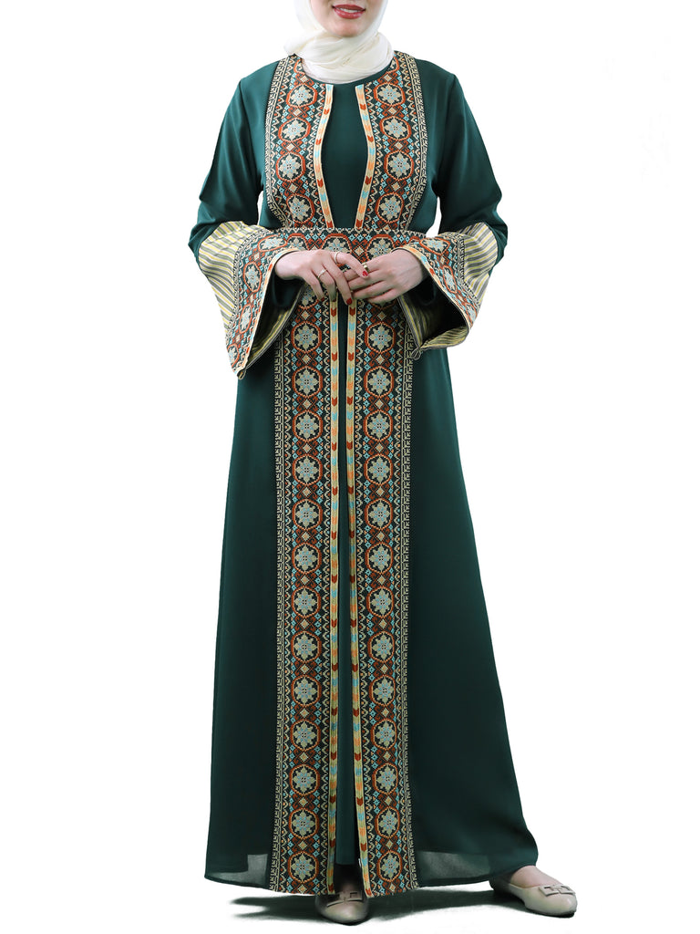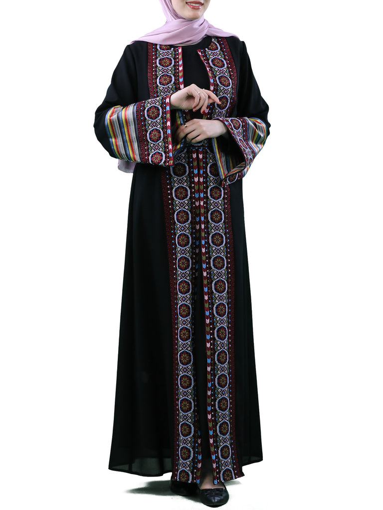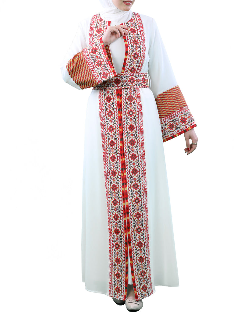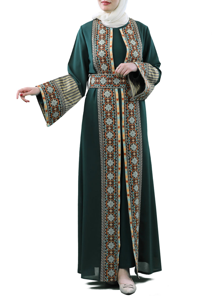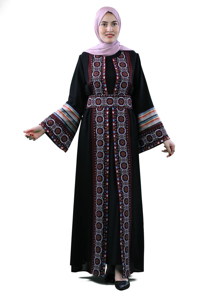 An elegant two-piece bisht adorned with luxurious embroidery threads that add an authentic traditional touch combined with refined elegance. The embroidery highlights the bisht’s details precisely on the chest and edges, creating a design that blends heritage with distinction.