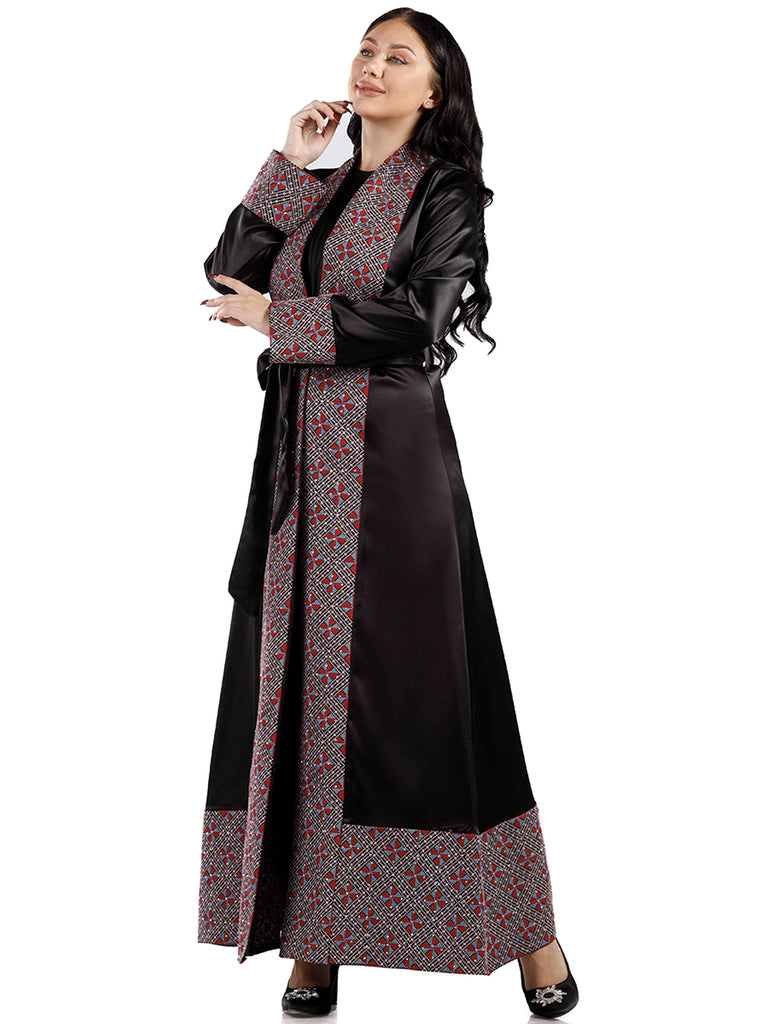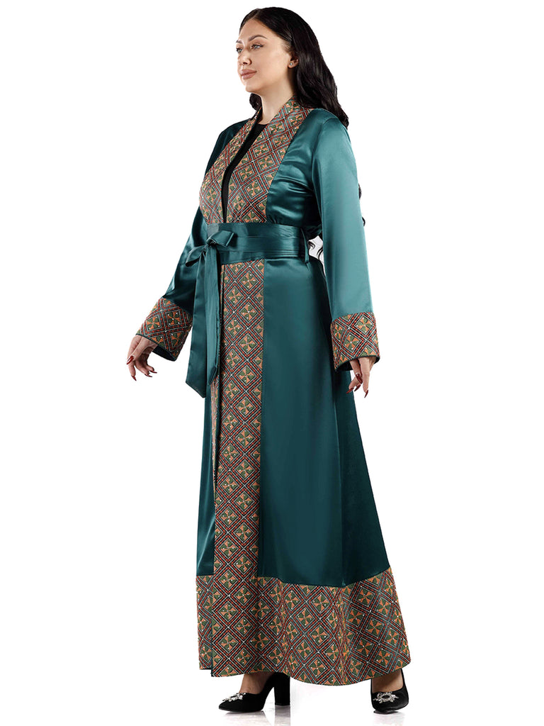 This bisht is a wonderful piece of art that displays intricate designs and inscriptions. The bisht is made of soft and comfortable fabric, decorated with bright and shiny embroidery. The Bisht is full-length, and gives the wearer an elegant and sparkling look.