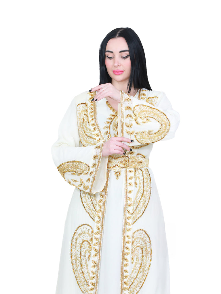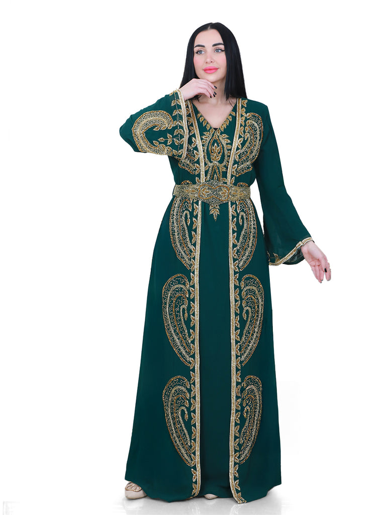 This kaftan features meticulously hand-done embellishments by skilled artisans, giving you a captivating look perfect for special occasions.