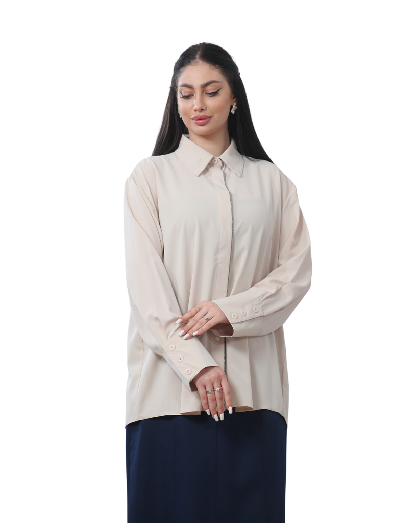 The shimmering rhinestone shirt is designed to give you a unique feminine touch with effortless elegance.