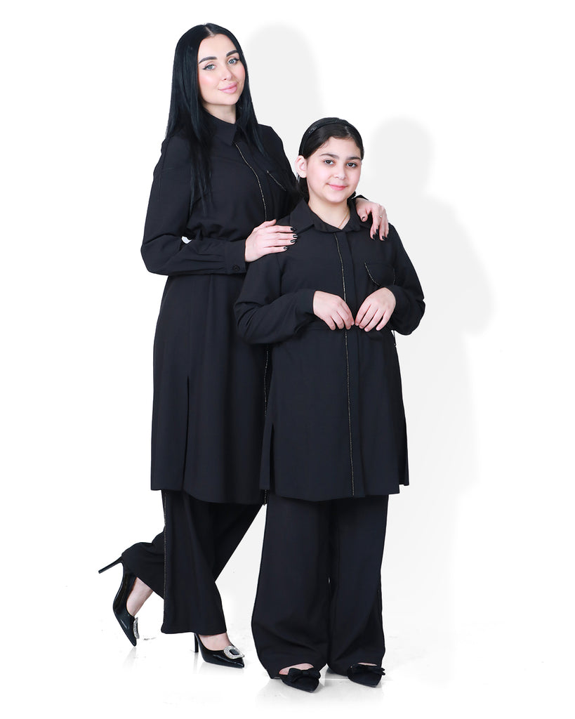 An elegant and modest outfit that combines sophistication and comfort, specially designed to suit Eastern taste and Islamic modesty, available for both mother and daughter in the same design for a coordinated and classy look.