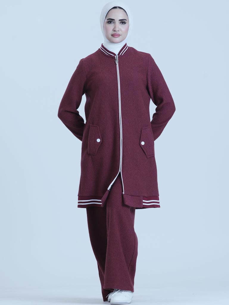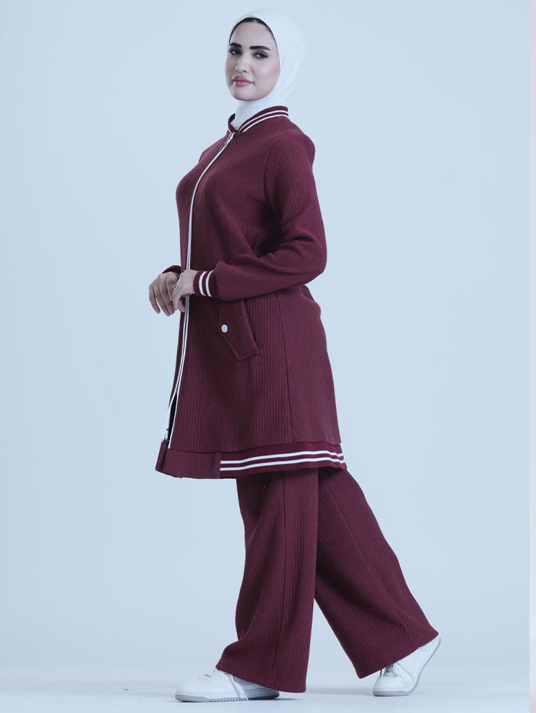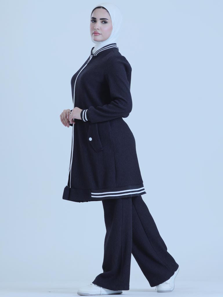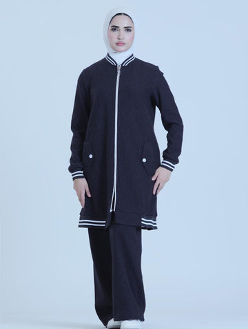 The women’s two-piece sports set is a practical and stylish choice that combines comfort with modesty. It features a modest, full-length design that offers complete coverage and an elegant look, making it suitable for various daily activities or casual outings.