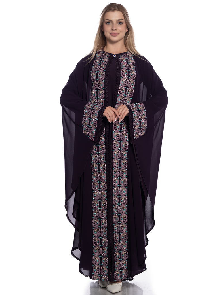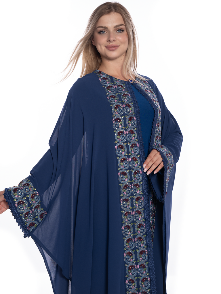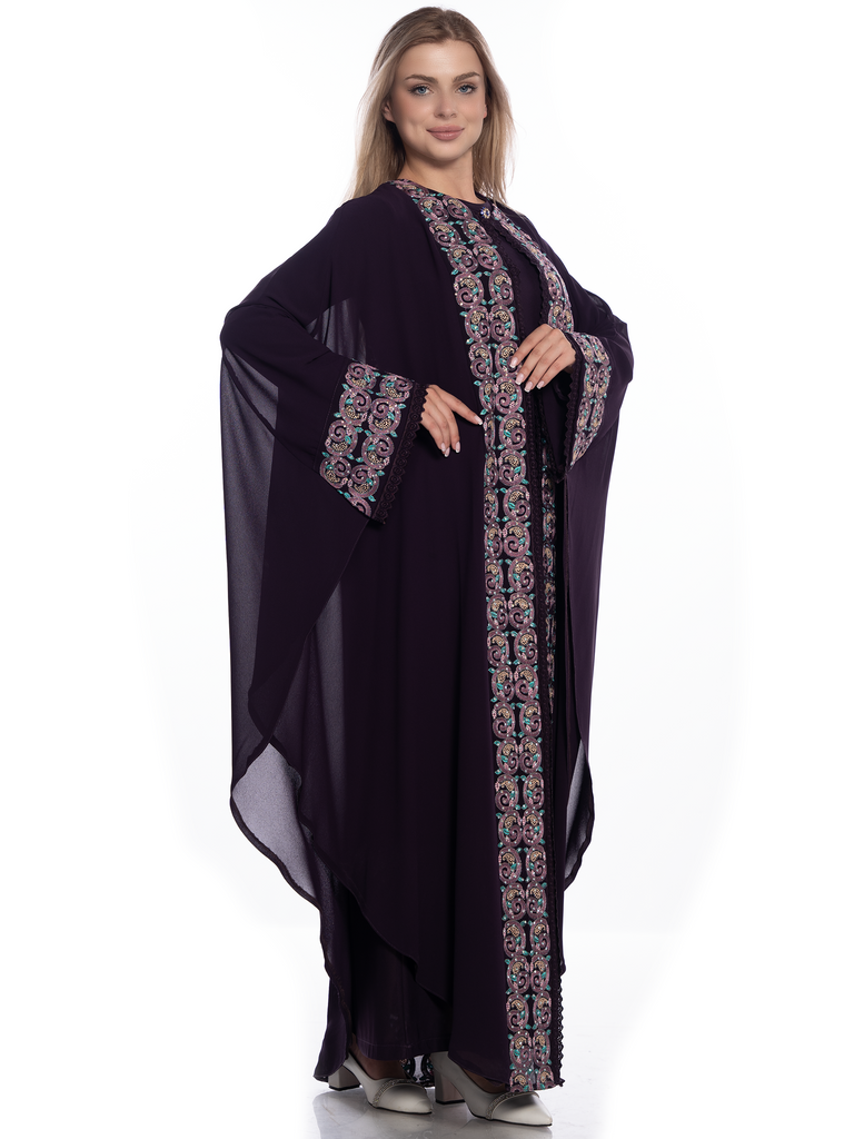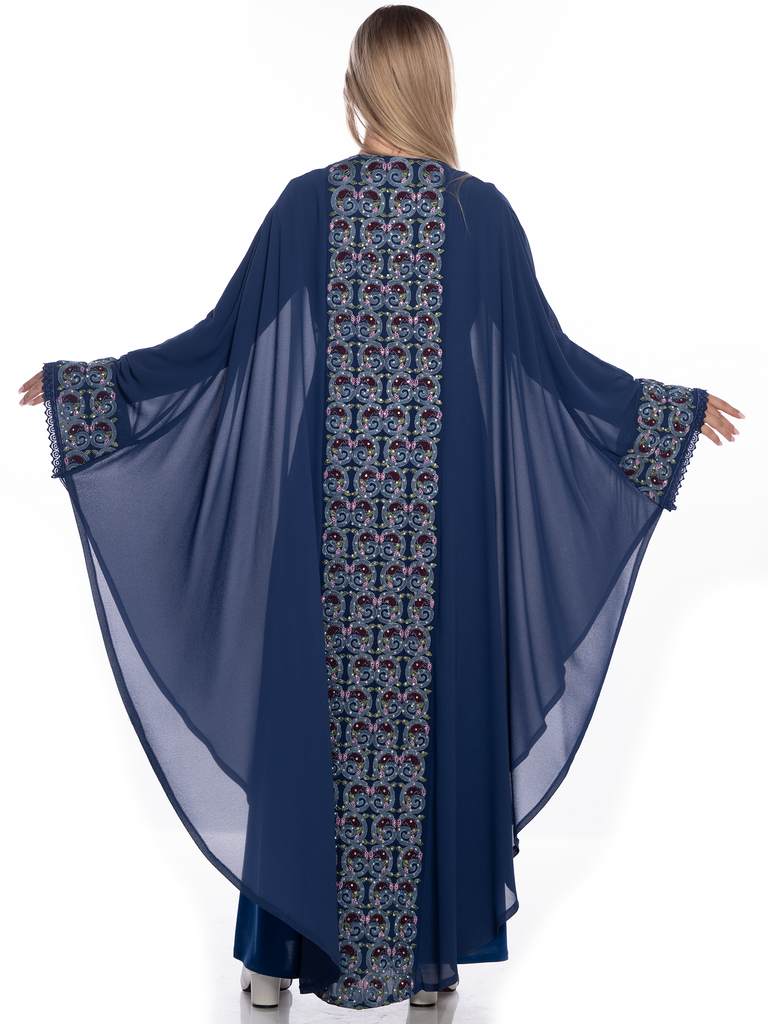 Bisht embroidered two-piece with embroidered threads in several colors to add an aesthetic touch to your look