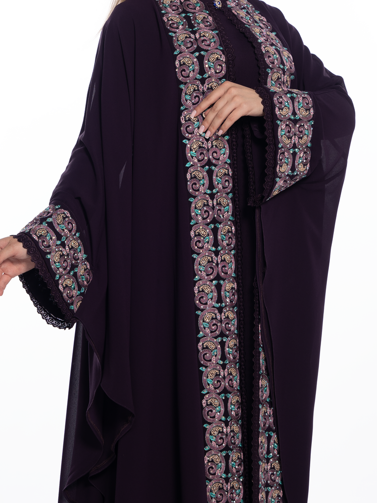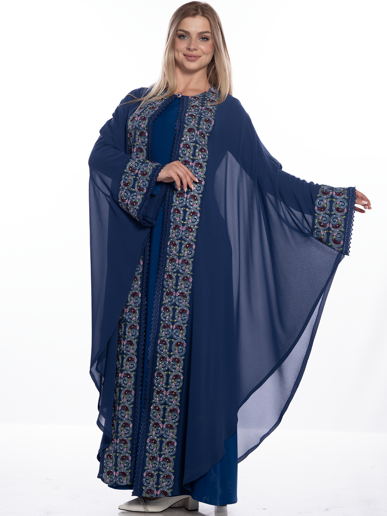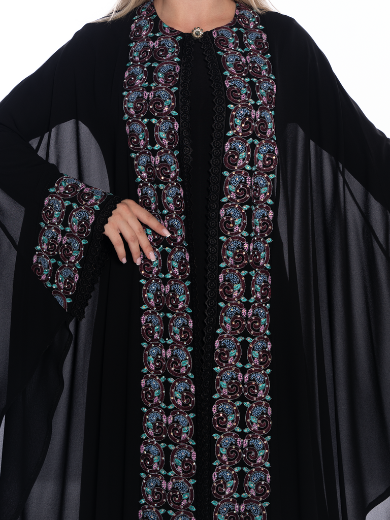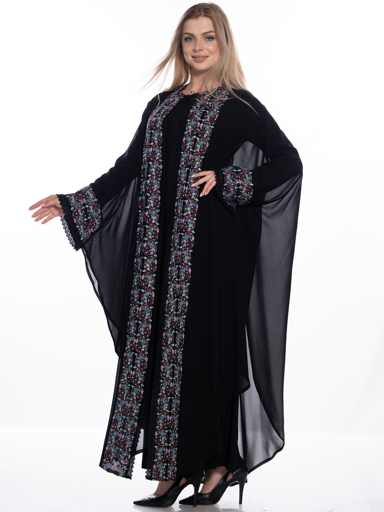Bisht embroidered two-piece with embroidered threads in several colors to add an aesthetic touch to your look