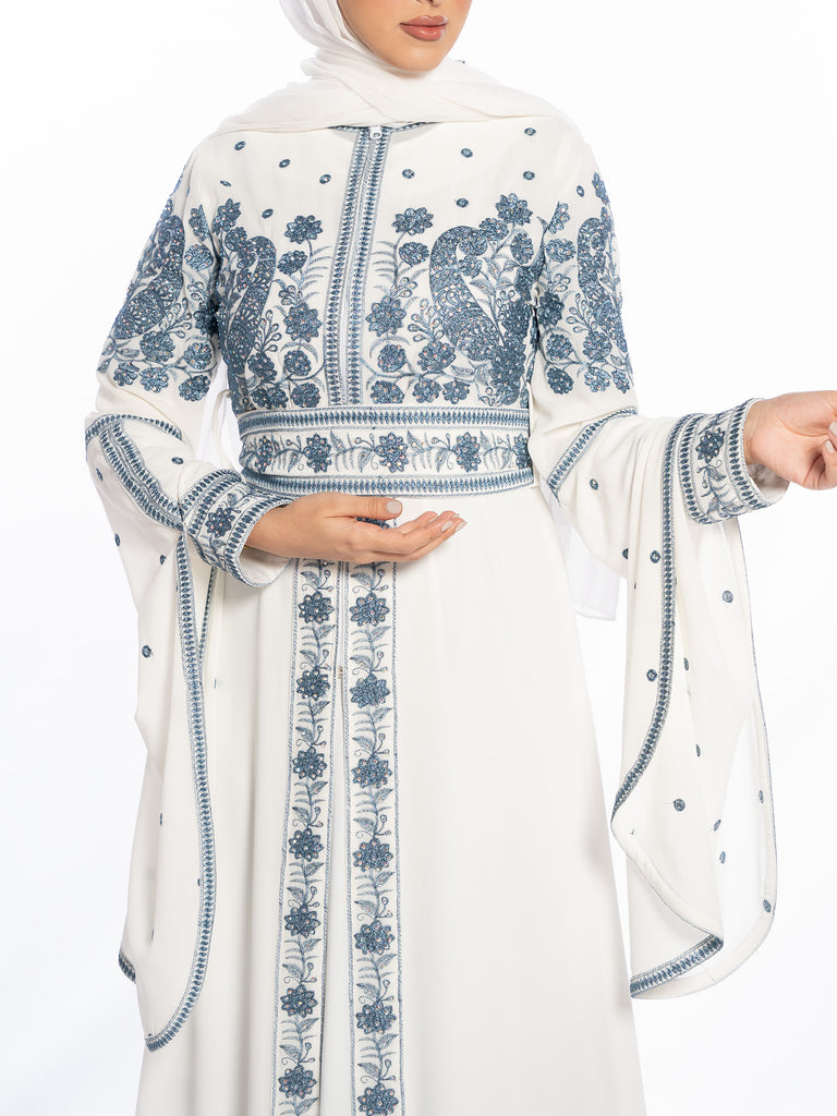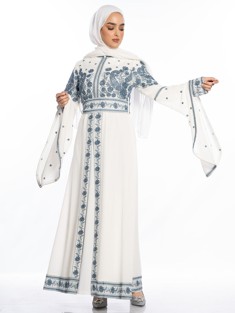 Thob embroidered that you wear on your special occasions features colors that signify luxury and sophistication, and it is embroidered with gold thread.