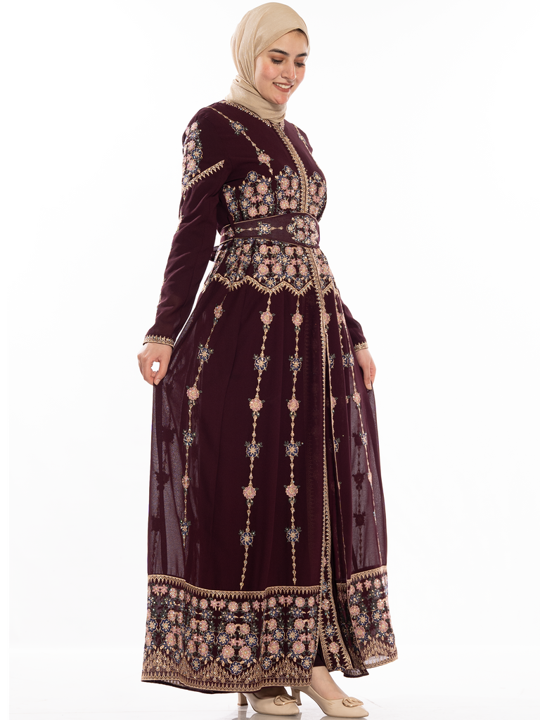 Caftan embroidered that you wear on your special occasions features traditional colors and is embroidered in red.
