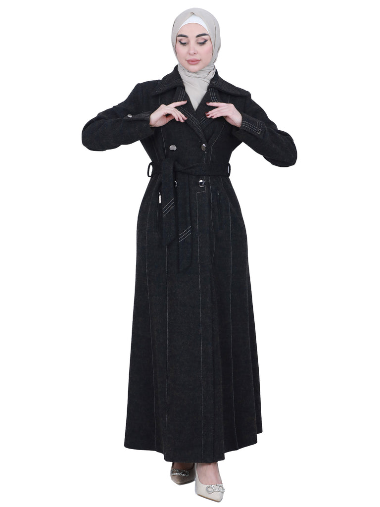 The jilbab features stylish front buttons that run from the chest down, adding a classic touch while making it easy to wear. It also includes a waist belt that highlights your figure and allows you to adjust the fit to your liking.
