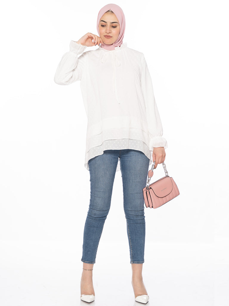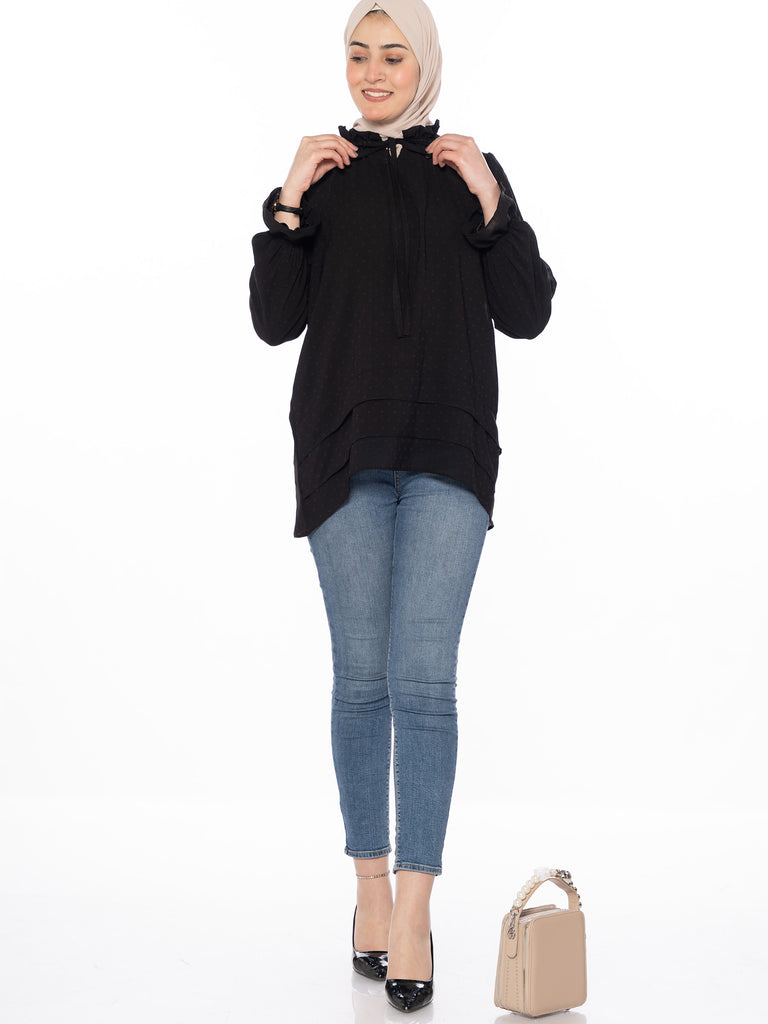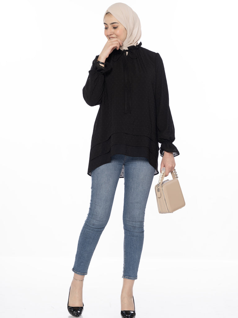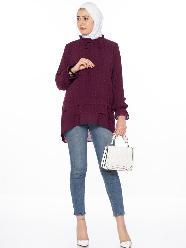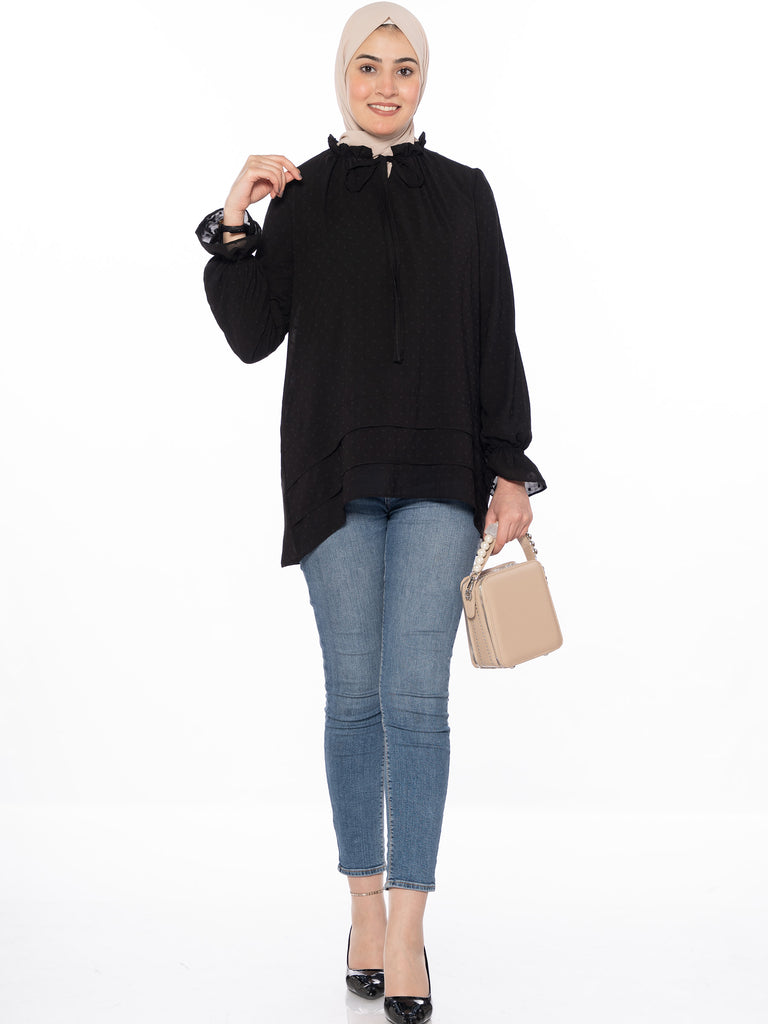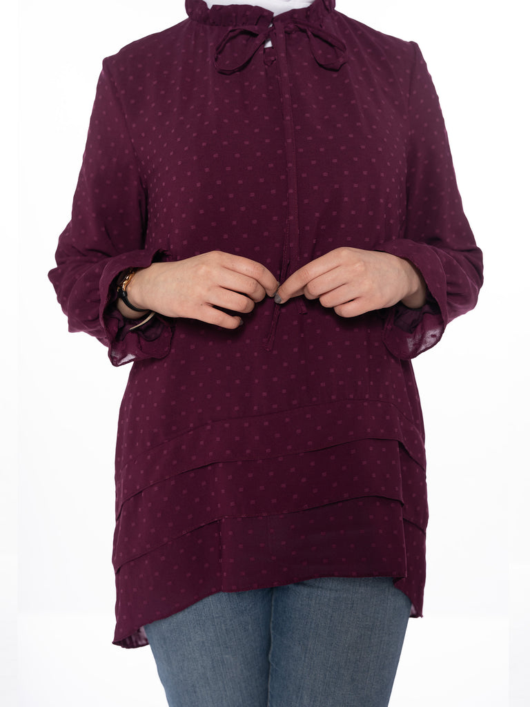 Elevate your wardrobe with this chic, tailored blouse, featuring a flattering fit and versatile design that's perfect for any occasion.