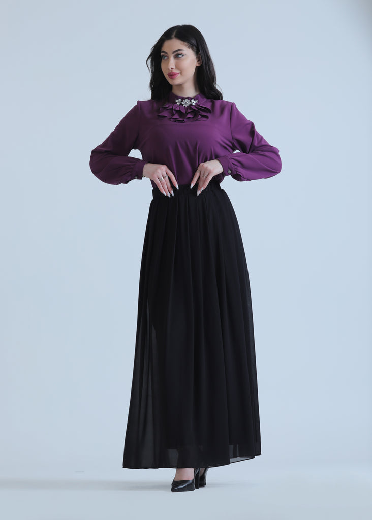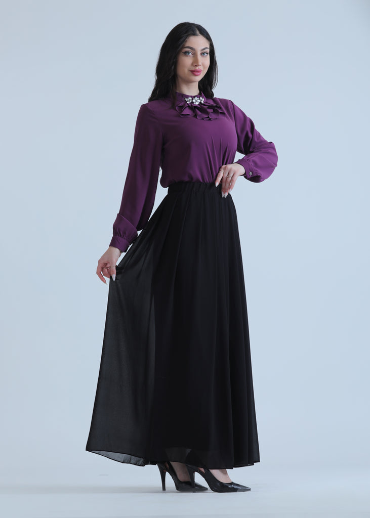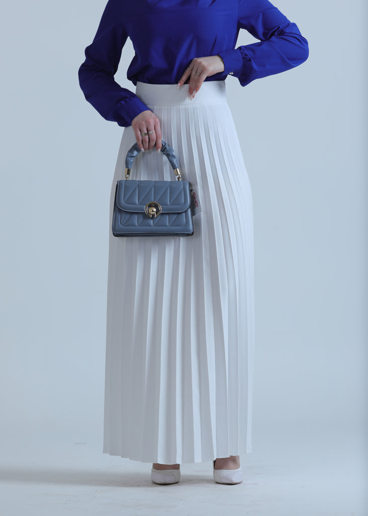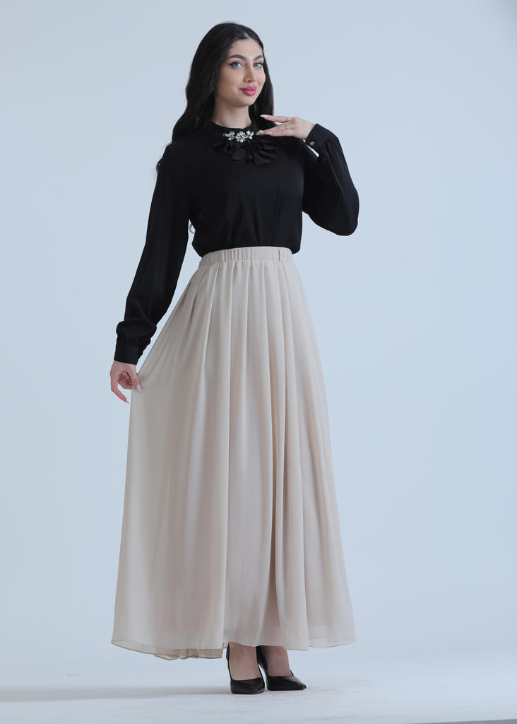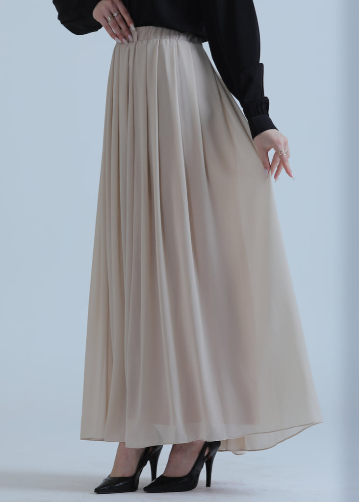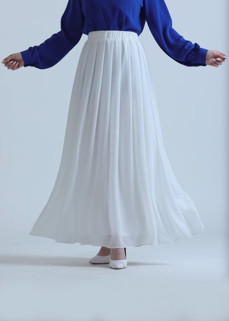 Pleated Chiffon Skirt in Four Colors featuring a lightweight, elegant design with flowing pleats that add movement and style. A trendy and versatile piece, perfect for daily looks and casual occasions.