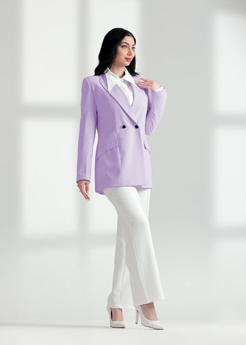 Blazer with delicate pocket detailing, adorned with sparkling rhinestones, offering a chic and elegant touch. Paired with a basic blouse for a balanced look that combines classic elegance with a modern twist. Perfect for formal occasions or sophisticated everyday outfits.