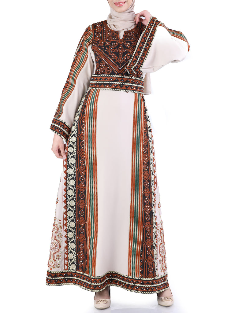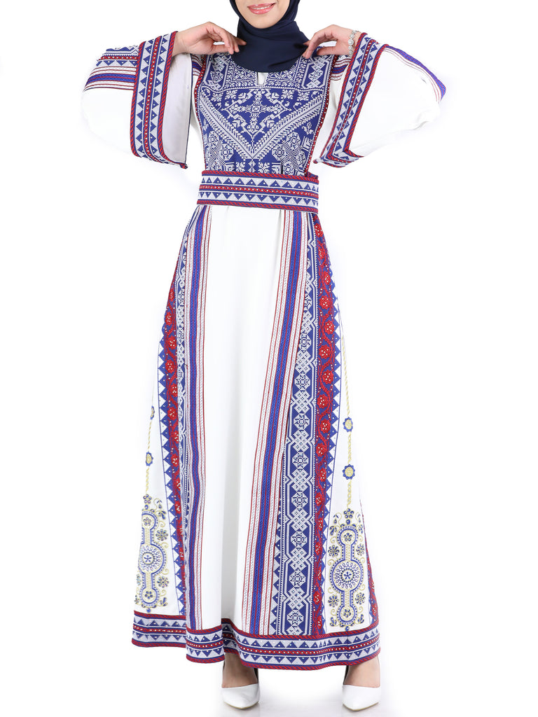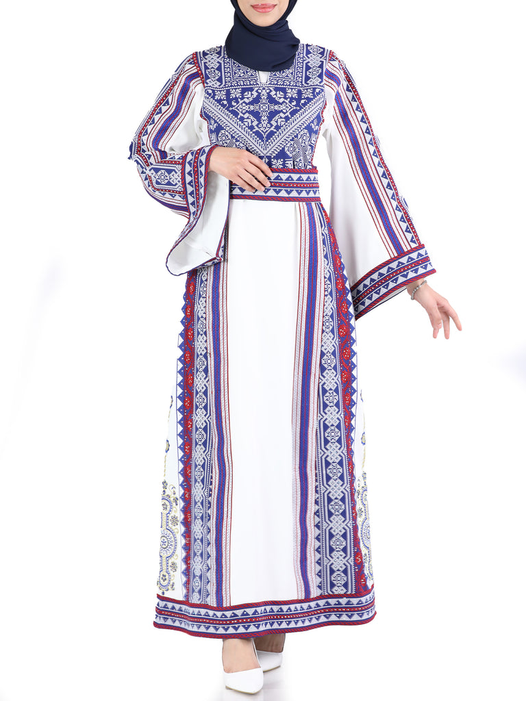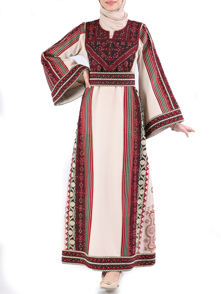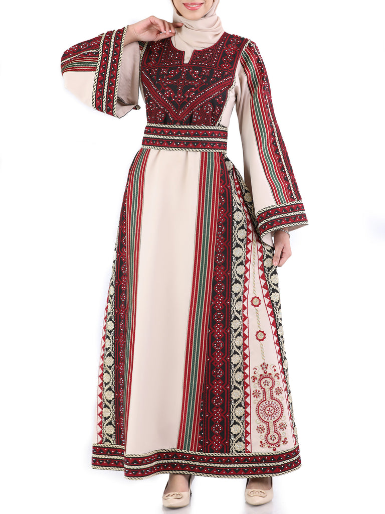 The sleeves elegantly extend from the shoulders and reflect the same exquisite embroidery. Whether the sleeves are short, three-quarter or full-length, they add a touch of sophistication to the overall design. The embroidery can be concentrated on the sleeves near the cuffs or extend along the entire length of the dress, enhancing the appeal of the dress.