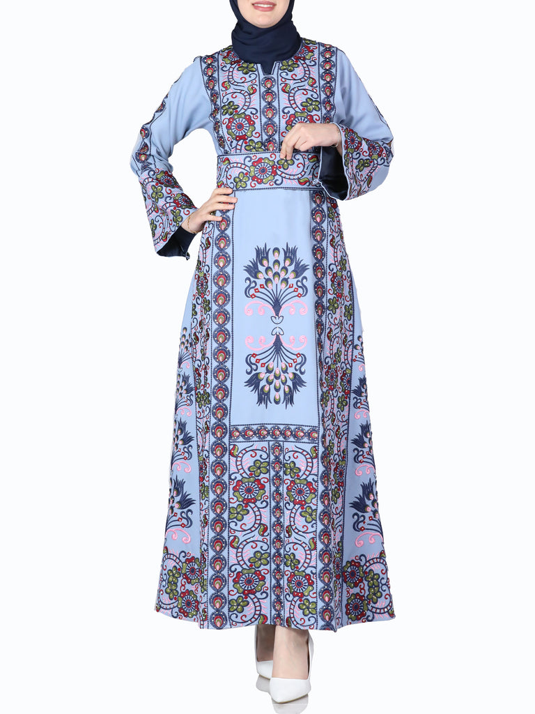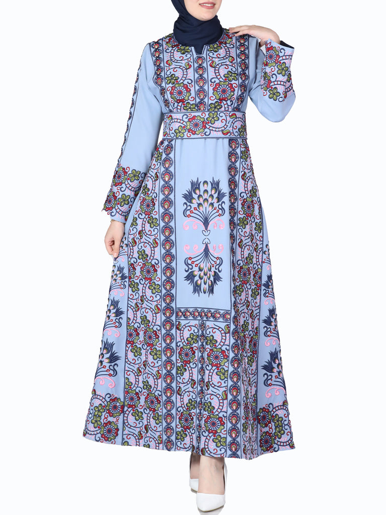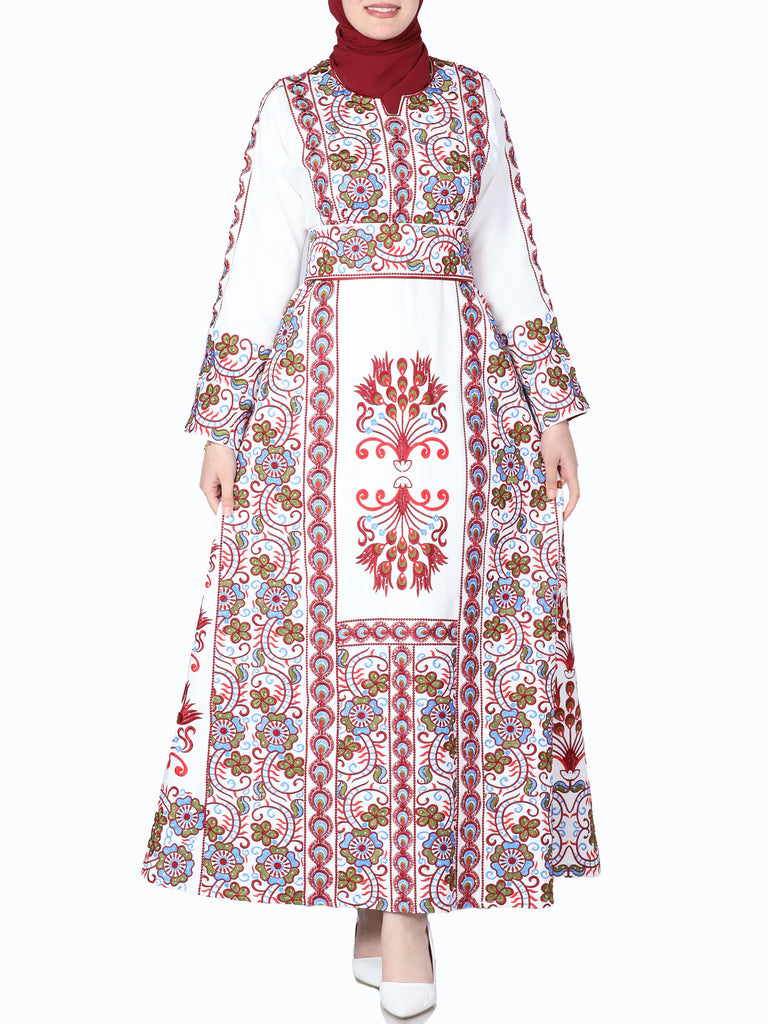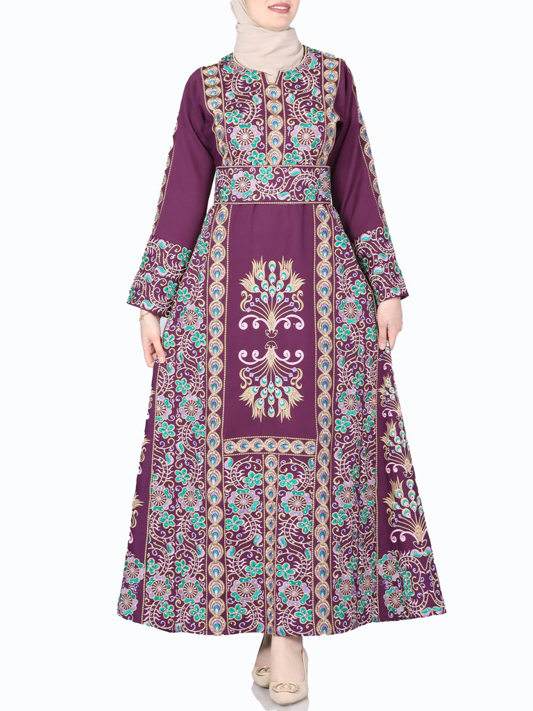 The sleeves elegantly extend from the shoulders and reflect the same exquisite embroidery. Whether the sleeves are short, three-quarter or full-length, they add a touch of sophistication to the overall design. The embroidery can be concentrated on the sleeves near the cuffs or extend along the entire length of the dress, enhancing the appeal of the dress.