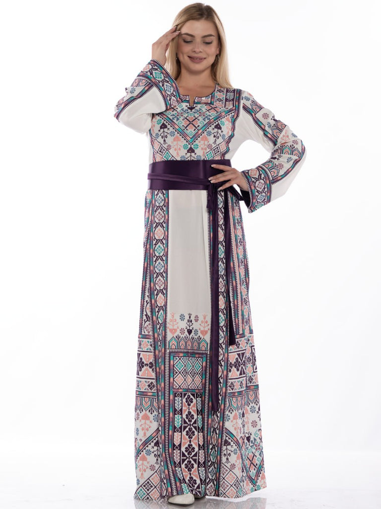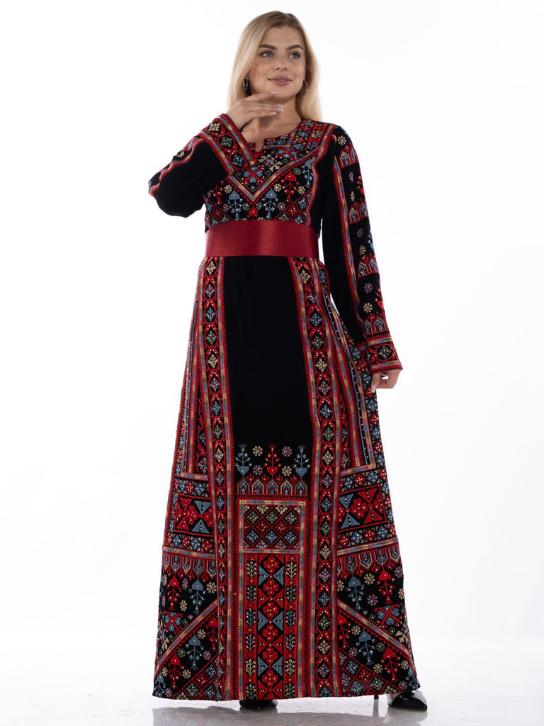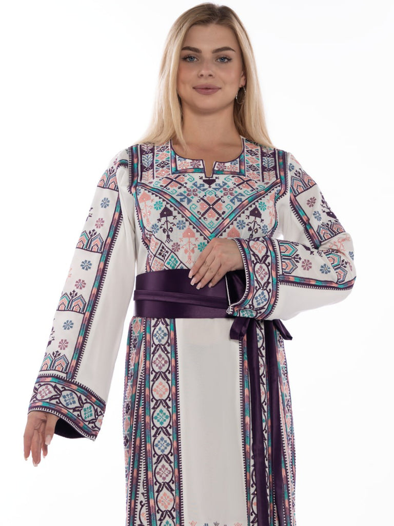 Thob embroidered dress that you wear on your special occasions features traditional colors and is embroidered in multiple colors.