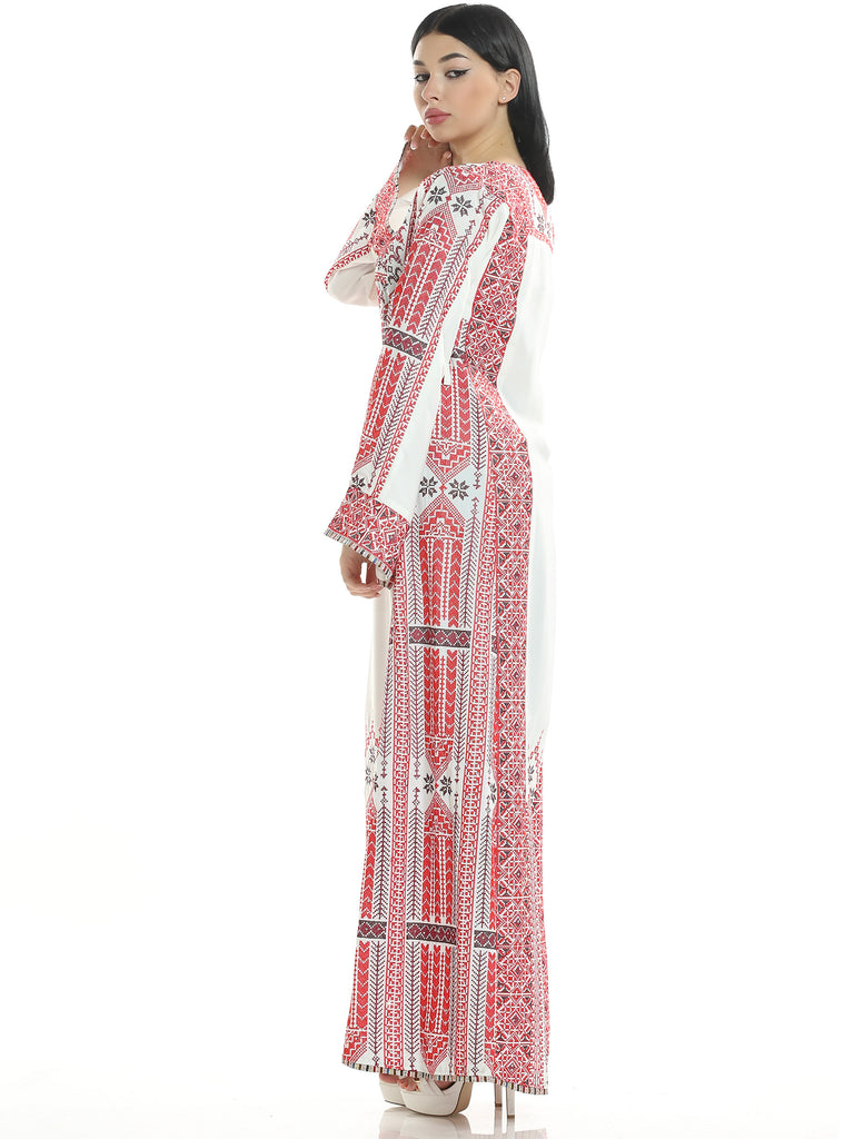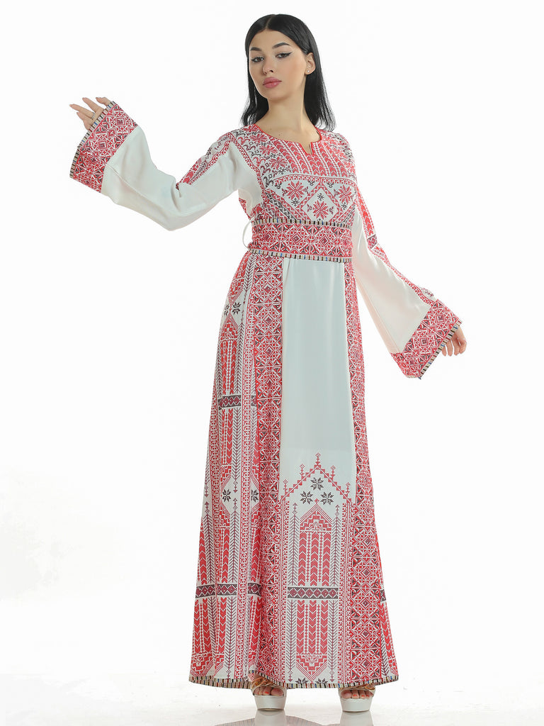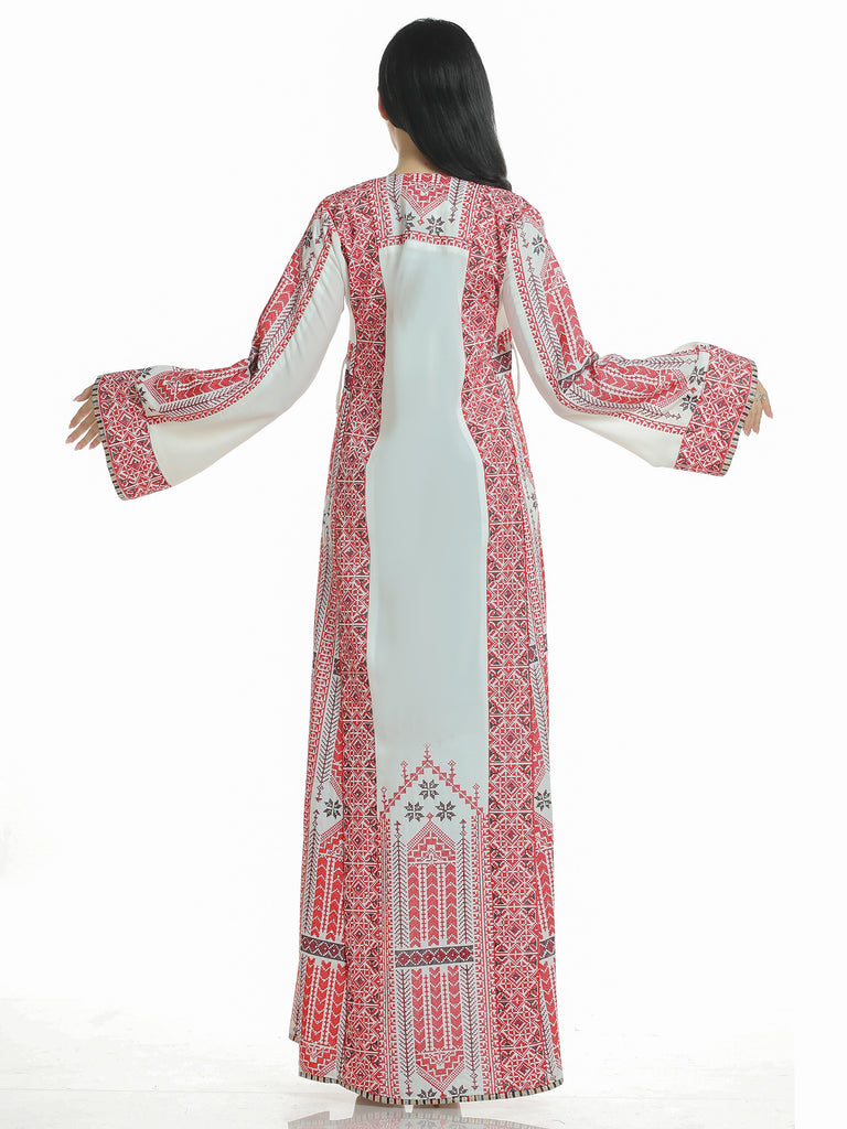 White and red: this garment has the same design and embroidery, but instead of black, white is used for the fabric. And instead of gold, a strong red color is used for decorative patterns. This Color gives an atmosphere of courage and enthusiasm to the dress.