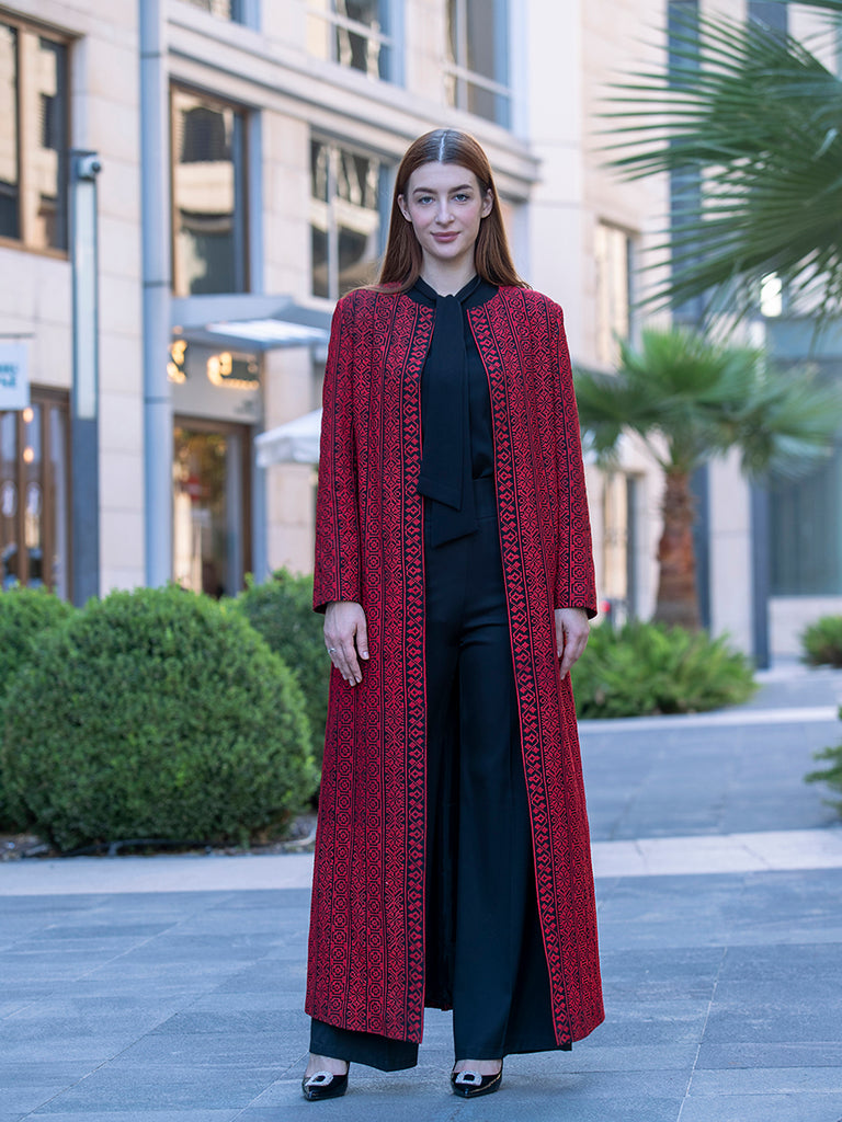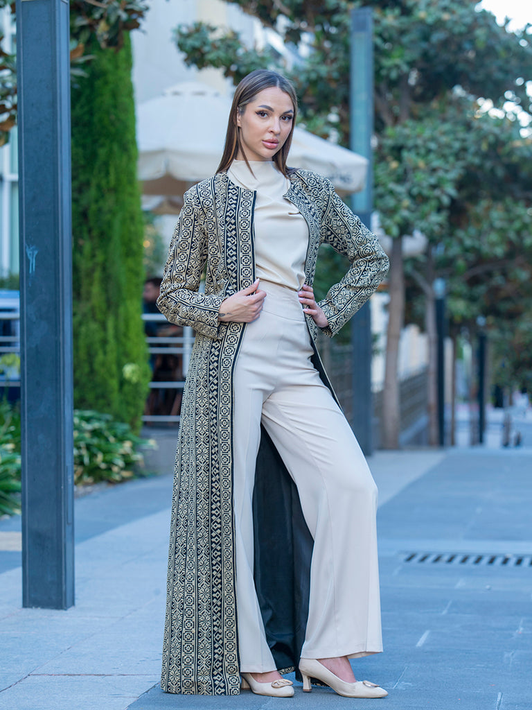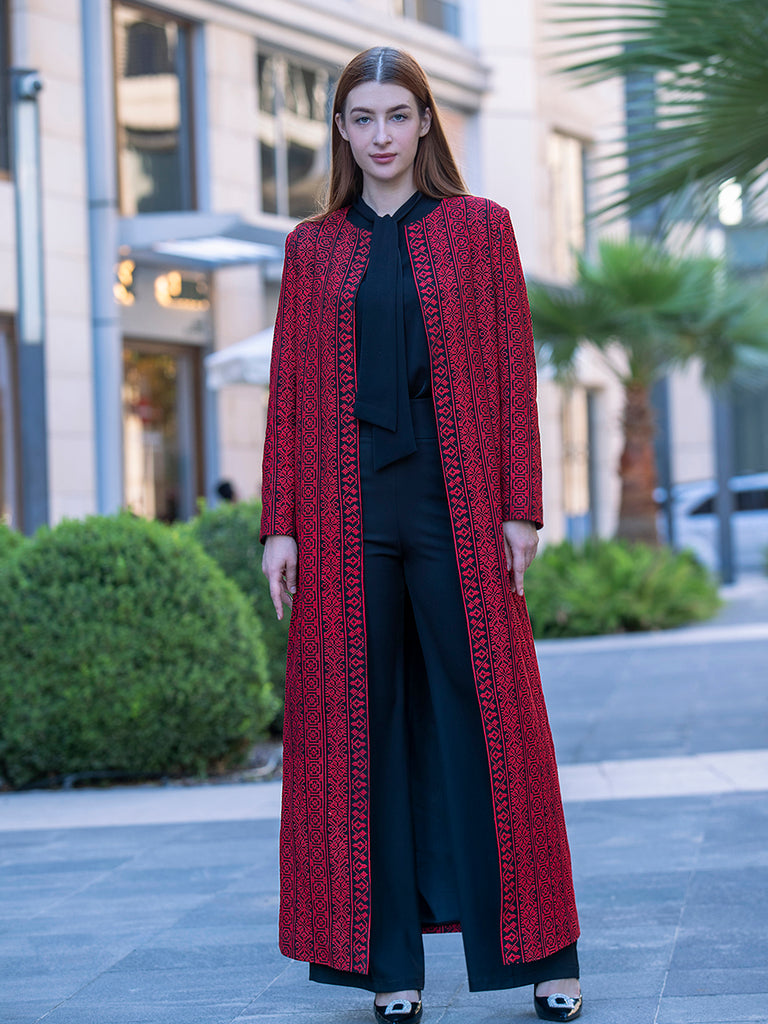 The long embroidered jacket is considered a luxurious piece that grants women a striking presence and a complete look that reflects refined taste. Distinguished by its extended cut that elegantly covers the body, this jacket is suitable for various formal occasions as well as special outings.